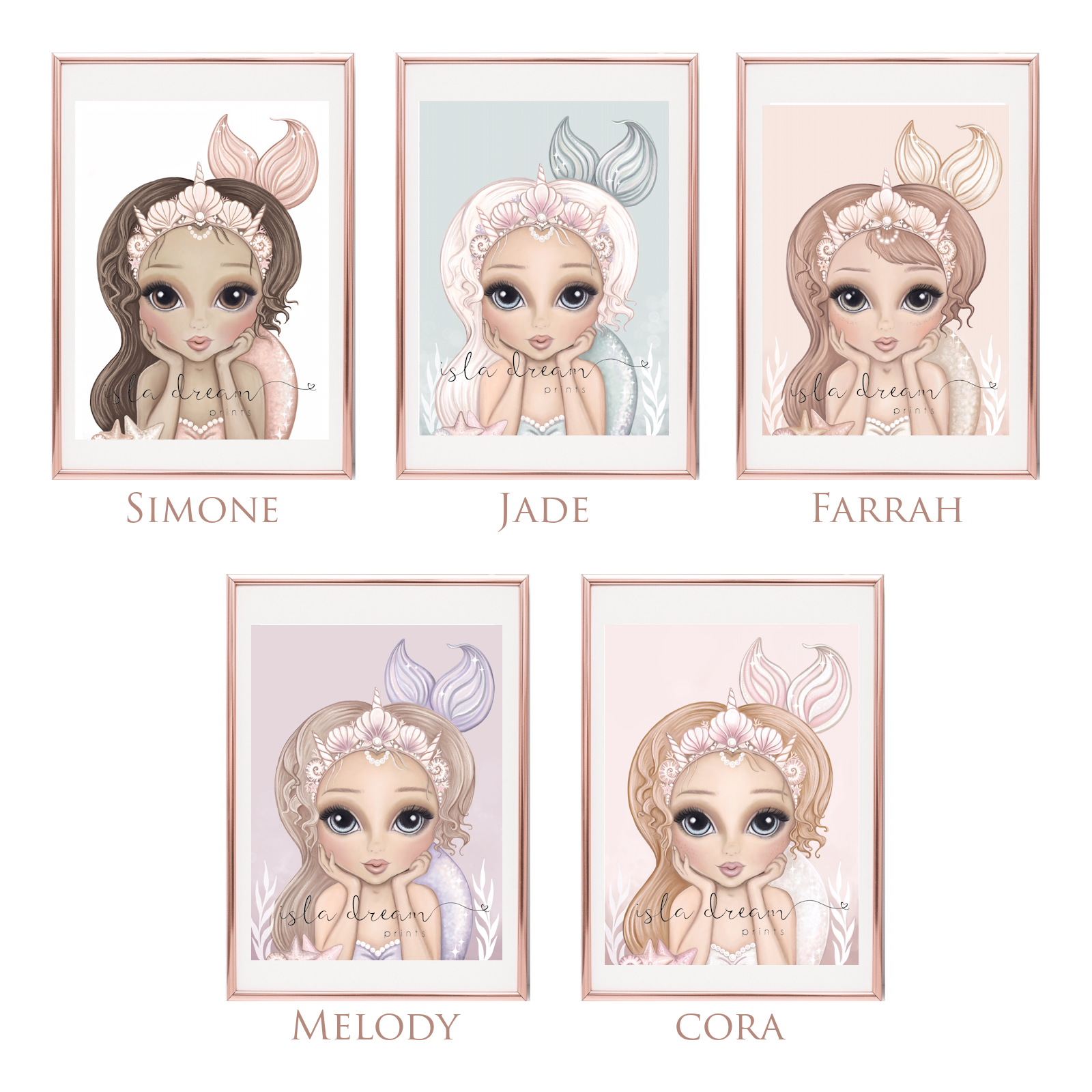 Designing a magical mermaid themed bedroom for your child? We have a stunning range of mermaid wall art prints to choose from, including these five gorgeous mermaids that come in a range of colours to suit your different colour palettes and styles.