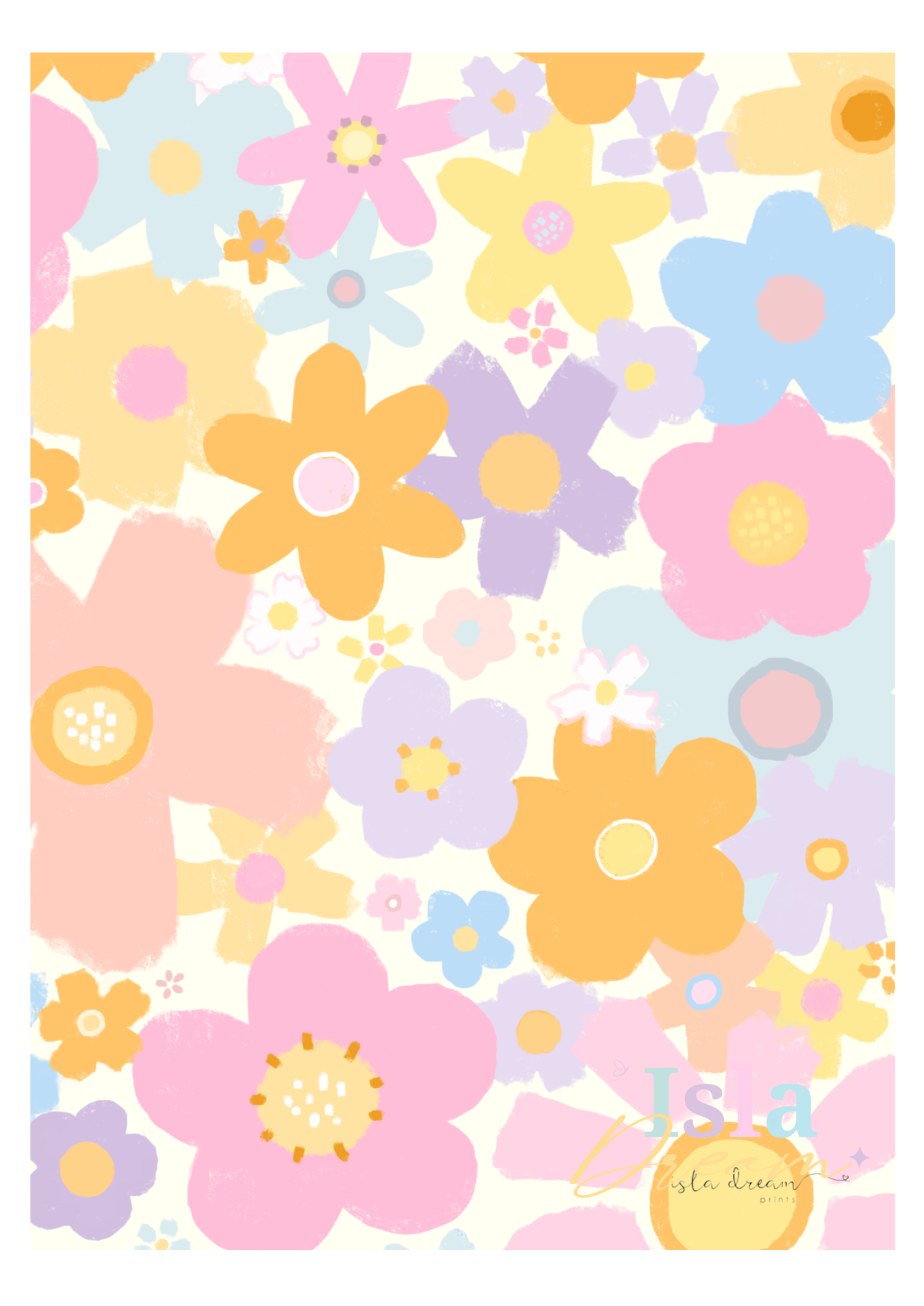 Spring Fling- the art print! These flowers are so happy and uplifting! Created in a mix of rainbow pastel colours to ignite imagination and adventure in your kids play spaces. Let the fun begin!